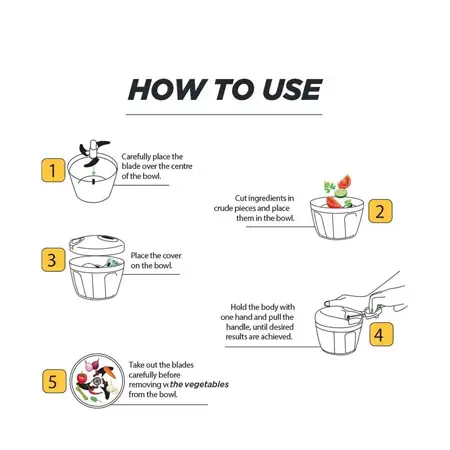 - Save your cooking time: only few pulls, you can chop the vegetables into small pieces!